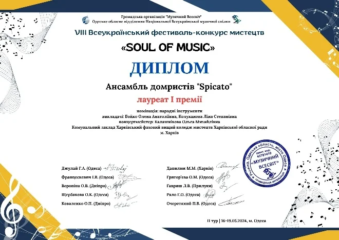 АНСАМБЛЬ ДОМРИСТІВ «SPICCATO»