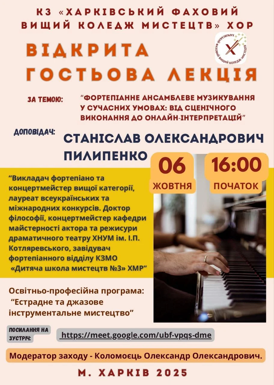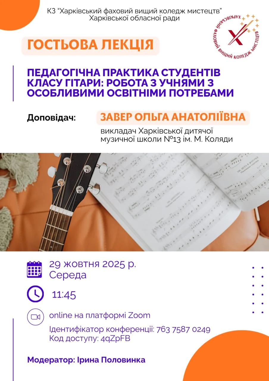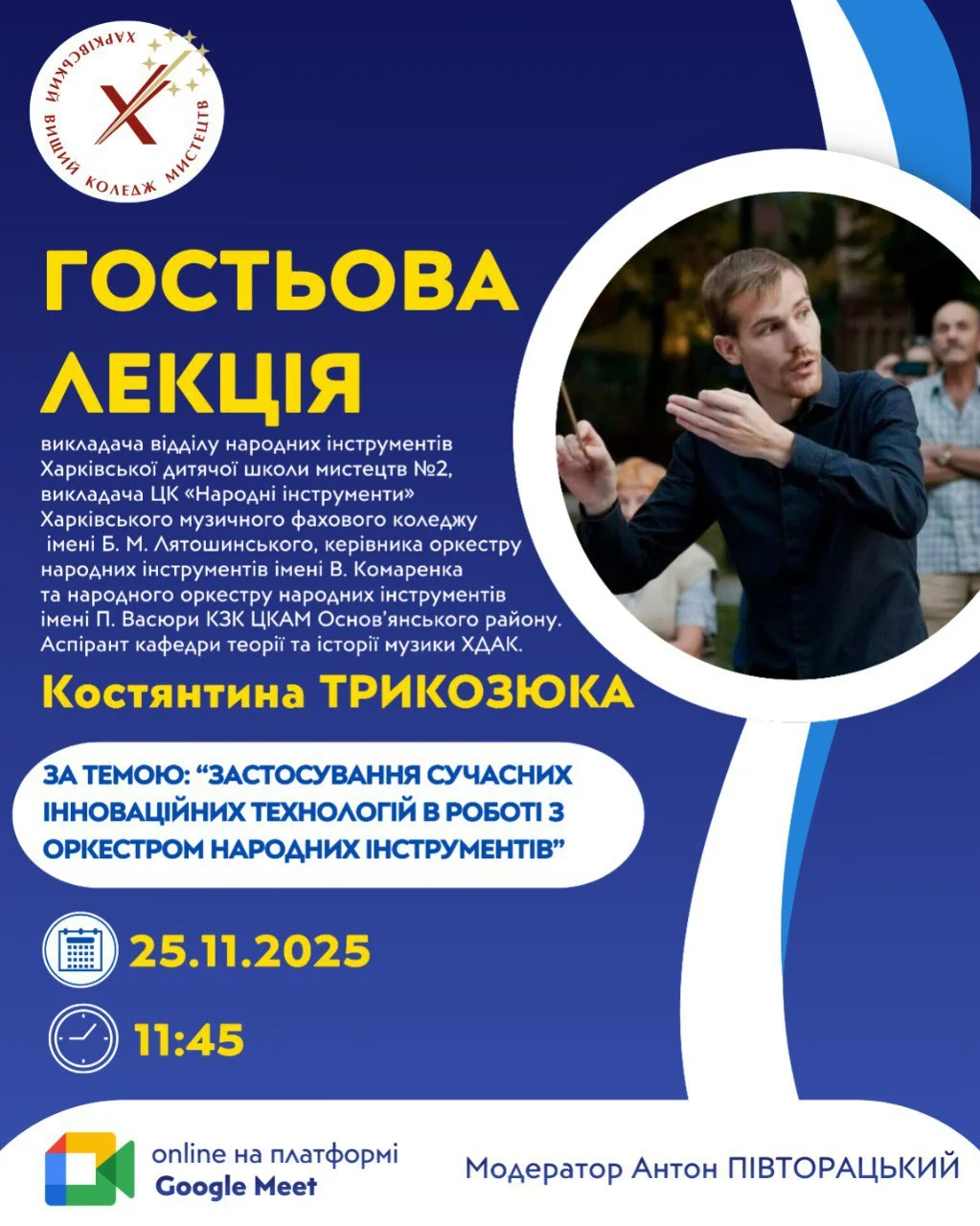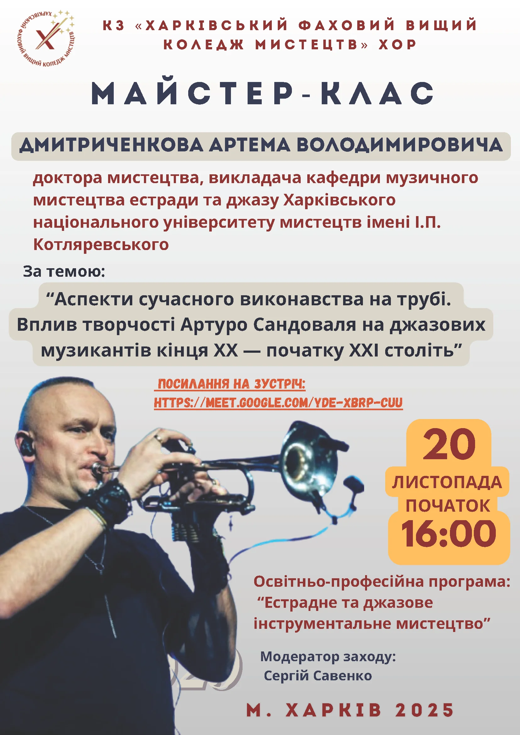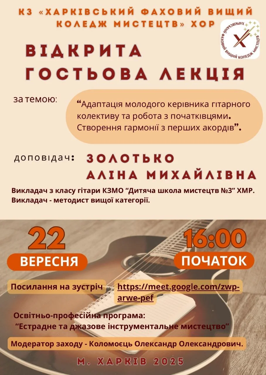 Онлайн-зустрічі здобувачів освіти зі стейкхолдерами/роботодавцями, тема «Підготовка та працевлаштування здобувачів мистецької освіти: компетентності, практика, перспективи», обговорення ОПП «Естрадне та джазове інструментальне мистецтво» спеціальність 025 «Музичне мистецтво», ХФВКМ, 26 лютого 2025 року