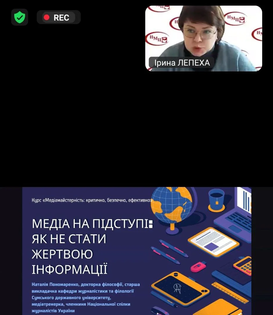 2026 рокуСьогодні актив студентської ради коледжу у складі 8 здобувачів освіти: Каміли Шмат, Іллі Різника, Вікторії Кривулі , Софії Орлової, Софії Каюмової, Амалії Зеленої, Аліси Бондаренко, Марії Ватралік взяли участь у цікавому проєкті НМЦ ФПВО «Медіа майстерність: критично, безпечно, ефективно». На першому занятті «Медіа на підступі: як не стати жертвою інформації» студенти дізналися про основи медіагігієни та вплив інформаційного потоку на свідомість людини. Лекція Наталії Пономаренко, докторки філософії, старшої викладачки кафедри журналістики та філології Сумського державного університету супроводжувалась цікавою презентацією та коментарями. У чаті підчас зустрічі учасники задавали питання та брали участь у обговоренні питань. Зокрема визначали сутність понять «факти» та «судження». Дякуємо організаторам за цікаву зустріч.