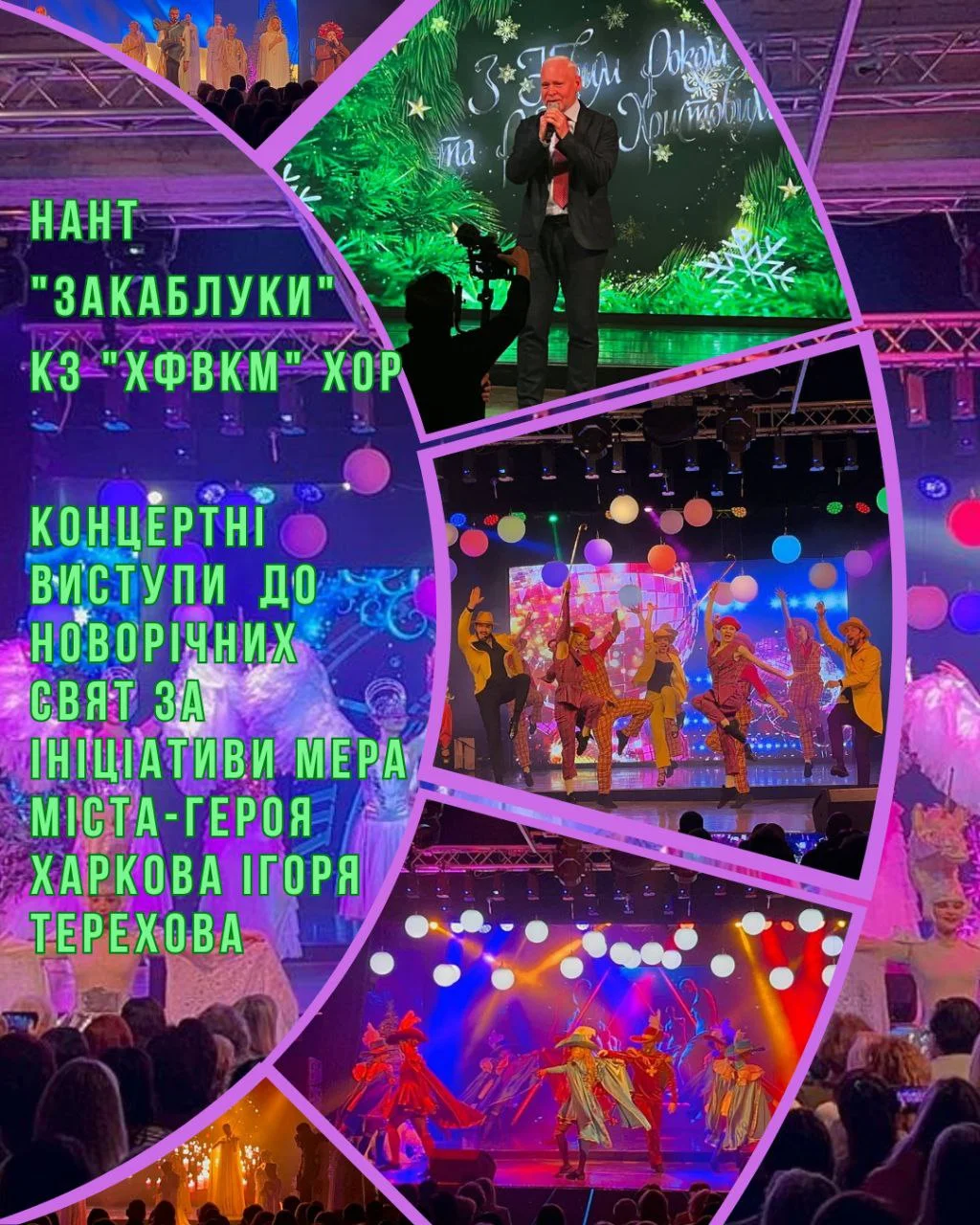 2025 року17-18 грудня 2025 року під патронатом Міського голови Ігоря Терехова відбулися концерти мистецьких колективів міста Харкова з нагоди Новорічних свят для працівників комунальних підприємств, закладів охорони здоров’я, освіти, соціальної сфери, районних адміністрацій і структурних підрозділів міськради.