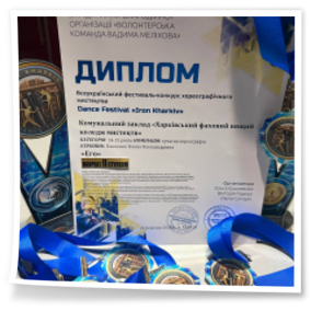 2026 рокуСьогодні в безпечній локації відбувся Всеукраїнський фестиваль-конкурс танцювальних шоу «Motor dans fest» за підтримки департаменту у справах сім’ї молоді та спорту Харківської міської ради. НАНТ «Закаблуки» Харківського фахового вищого коледжу мистецтв ОПП «Народна хореографія» (керівник Олена Ковалівська, балетмейстер Катерина Василенко) став Лауреатом 1 ступеня та отримав Гра-прі конкурсу! Вітаємо наших переможців! Пишаємось вами!
