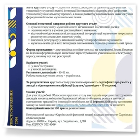 2026 рокуСьогодні в межах обласного науково-творчого проєкту «Народне інструментальне виконавство: минуле у сучасному» відбувся обласний круглий стіл здобувачів фахової передвищої освіти «Професійні компетентності майбутнього фахівця у сфері народно-інструментального виконавства».
