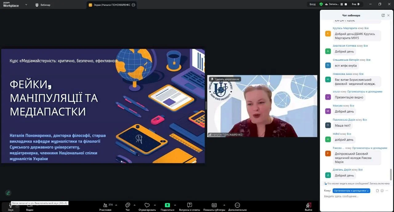 2026 рокуСьогодні на вебінарі «Фейки, маніпуляції та медіапастки» разом із учасниками зібрання представники студентської ради коледжу продовжили навчання з медіаграмотності. Під час зустрічі дізналися про те, чому наш мозок такий вразливий до клікбейту та як не стати інструментом у чужій грі.