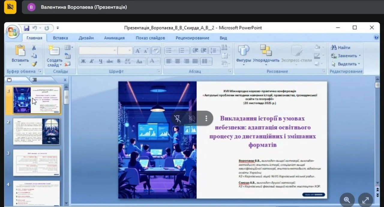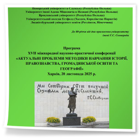 2025 року20 листопада 2025 року в Харківському національному педагогічному університеті імені Г.С.Сковороди відбулася ХVІІ Міжнародна науково-практична конференція «Актуальні проблеми методики навчання історії, правознавства, громадянської освіти та географії». Учасниками заходу стали науковці, викладачі та педагоги-практики з різних регіонів України, які обговорили сучасні виклики та інноваційні підходи в освітньому процесі. У конференції взяли участь викладачі історії та соціально-економічних дисциплін коледжу.