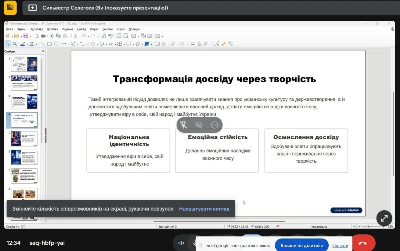 2025 року3 листопада в межах плану заходів щодо побудови успішної майбутньої кар’єри для 3-4 курсів здобувачів мистецької освіти коледжу Харківською філією Харківського обласного центру зайнятості було проведено семінар-тренінг за темою «Бренд-код особистості». Онлайн-захід відвідали 58 осіб, серед яких керівники груп, зацікавлені викладачі, представники адміністрації.