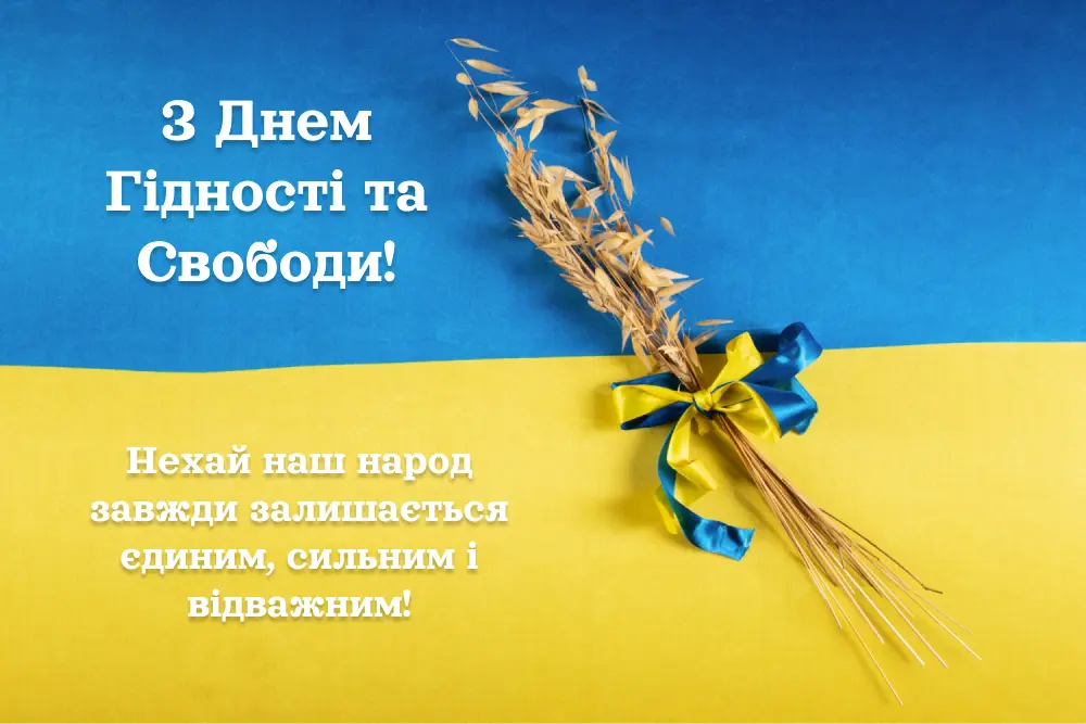 2025 рокуДорогі друзі, сьогодні важливий день для всіх українців – День Гідності та Свободи. День віддання шани патріотизму та мужності громадян, які стали на захист демократичних цінностей, прав та свобод людини і громадянина, національних інтересів нашої держави та її європейського вибору. Це не просто день у календарі, про який забуваєш, відірвавши календарний аркуш. Це день, коли згадуємо вже пройдений шлях боротьби за найвищі цінності, які не маємо права втратити, – Гідність і Свободу. Кожен день воїна «на нулі», коли ворог вкотре отримує відсіч, є Днем Гідності та Свободи. Кожен день, коли донатимо на ЗСУ, волонтеримо, підтримуємо тих, хто у скруті; коли сумлінно працюємо на розвиток України – є Днем Гідності та Свободи.