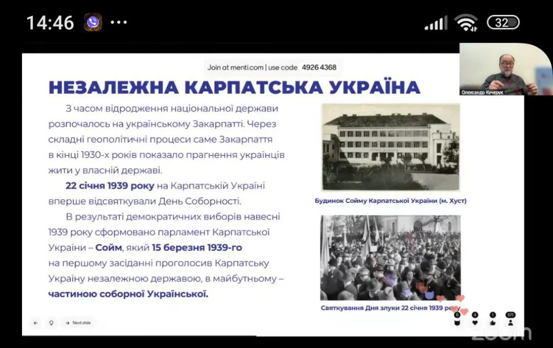 2026 рокуУ День Соборності України Голови студентських рад спеціальностей нашого коледжу у складі 7 осіб взяли участь у цікавому онлайн заході Освітнього центру Верховної Ради України, який об’єднав 83 тисячі учасників зі всієї України. Учасники здійснили захопливу онлайн-подорож сторінками здобуття та становлення Соборності нашої держави. Присутніх привітав Голова Верховної Ради України Руслан Стефанчук. Зі змістовною лекцією виступив Олександр Кучерук – сучасний український історик, культурний діяч, дослідник національно-визвольного руху XX століття. Вікторину провела Ольга Сухова, головний консультант Освітнього центру ВРУ.
