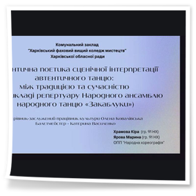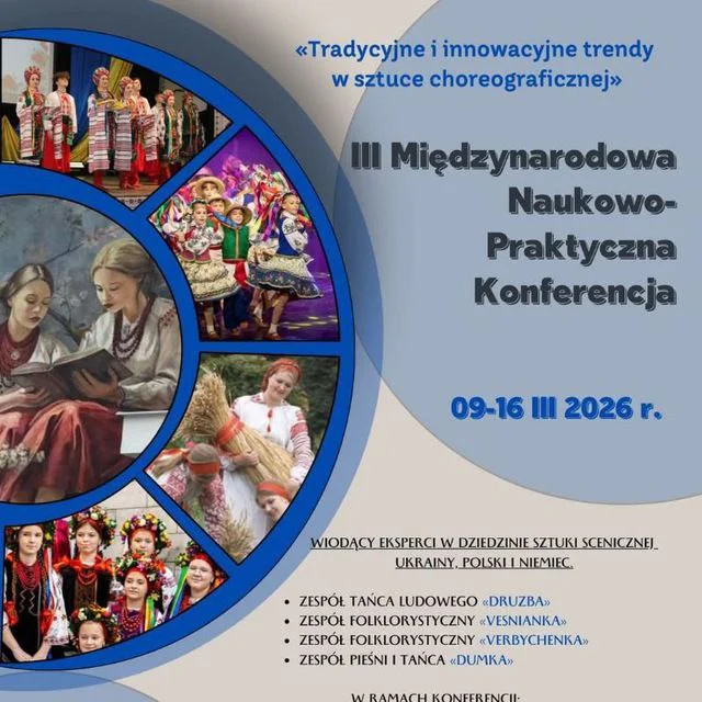 2026 рокуВикладачі Харківського фахового вищого коледжу мистецтв взяли участь у ІІІ Міжнародній науково-практичній конференції «Традиційні та інноваційні тенденції хореографічного мистецтва», що організована з 9 по 16 березня 2026 року в місті Гурово-Ілавецьке (Республіка Польща). До роботи конференції в онлайн-форматі 13 березня 2026 року долучилися викладачі освітньо-професійної програми «Народна хореографія». Із науковими доповідями виступили: