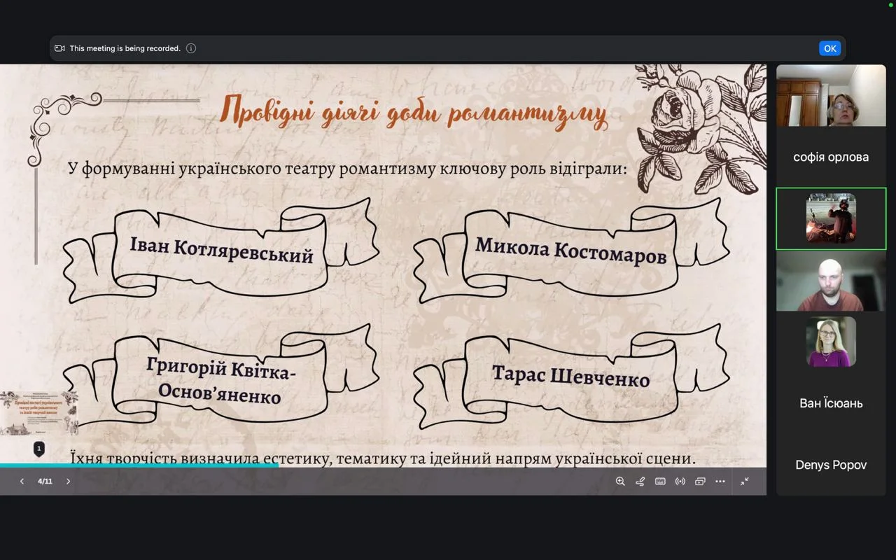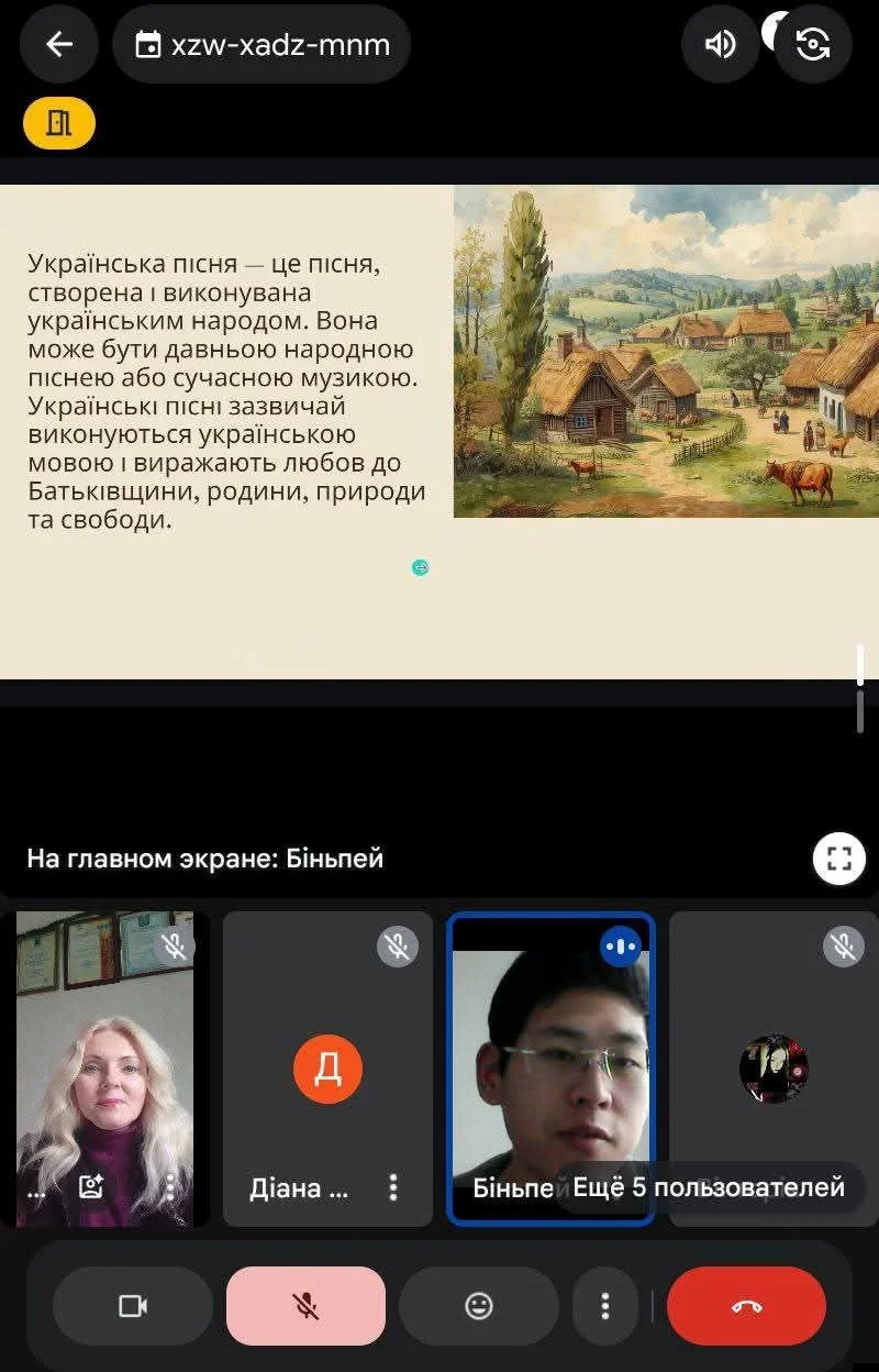 2026 рокуСьогодні практикантом ХНПУ імені Г.С.Сковороди Ші Біньпей (Китайська Народна Республіка) (керівник від бази практики Нікітенко А.М.) була проведена виховна година із студентами ОПП «Народне пісенне мистецтво та хорове диригування» на тему: «Українська пісня – код національної ідентичності».