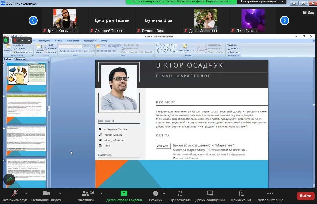 2025 року11 листопада в межах плану заходів щодо побудови успішної майбутньої кар’єри для здобувачів мистецької освіти Харківського фахового вищого коледжу мистецтв Харківською філією Харківського обласного центру зайнятості було проведено семінар-тренінг за темою «Моє ідеальне резюме».