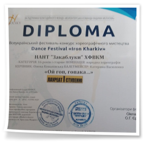 Вітаємо учасників НАНТ «Закаблуки» (керівник Олена Ковалівська, балетмейстер Катерина Василенко) зі здобуттям I премії в номінації «Народна хореографія» та студентку спеціалізації «Класична та сучасна хореографія» Кіру Мельник (керівник Олена Павленко) зі здобуттям II премії у номінації «Сучасна хореографія в категорії «Соло» на Всеукраїнському фестивалі-конкурсі хореографічного мистецтва «Iron Kharkiv», який відбувся у місті Харкові 11 травня цього року. Бажаємо миру, наснаги, творчих здобутків у майбутньому.