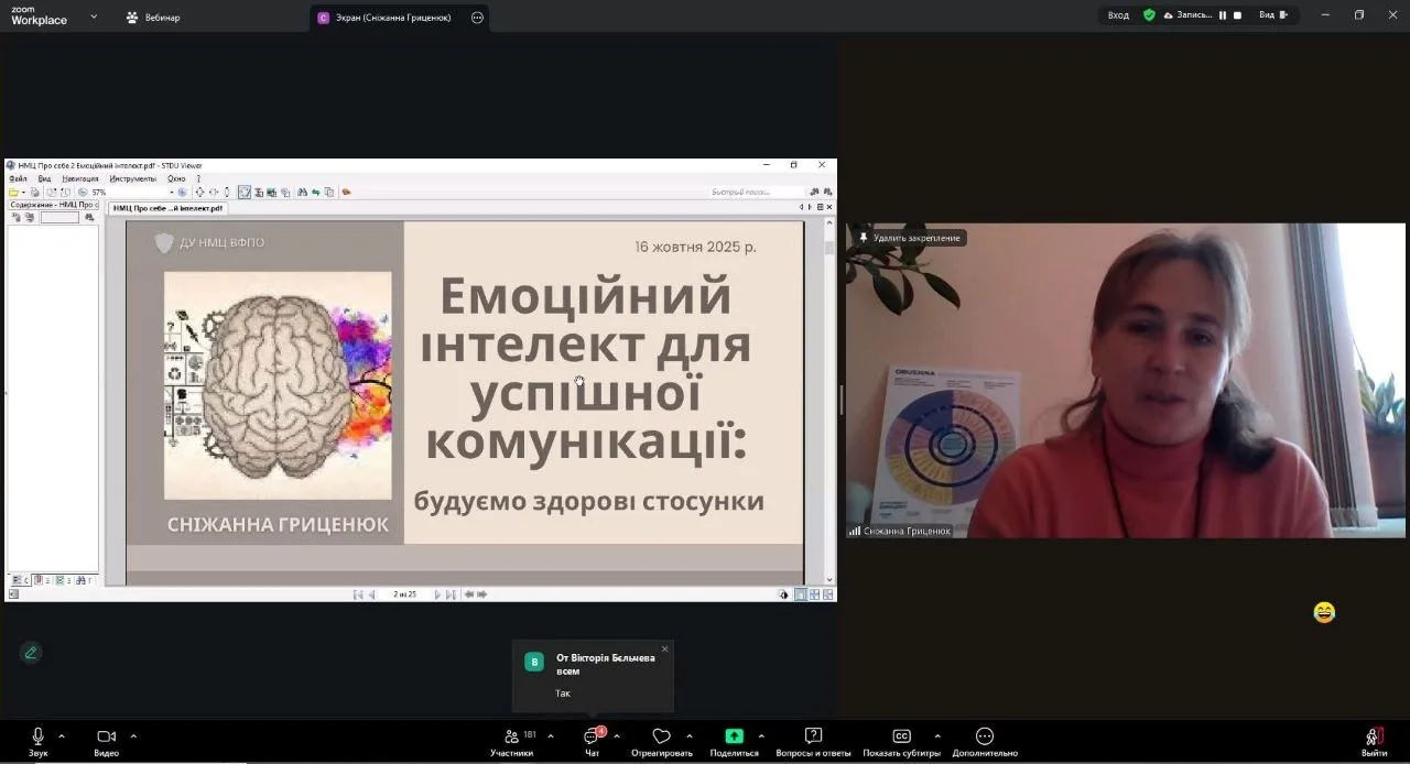2025 року16 жовтня 2025 року здобувачі освіти відвідали другий вебінар з циклу «PRO СЕБЕ: майстерня психологічних інструментів». Тема зустрічі «Емоційний інтелект для успішної комунікації: будуємо здорові стосунки», яку провела практичний психолог ВСП ТЕФК БНАУ Сніжана Гриценюк. Впродовж години спілкування студенти дізналися що таке емоційний інтелект, як він допомагає людині керувати власними емоціями, ефективніше долати стрес, будувати здорові стосунки, адаптуватися до нових умов та досягти успіху.