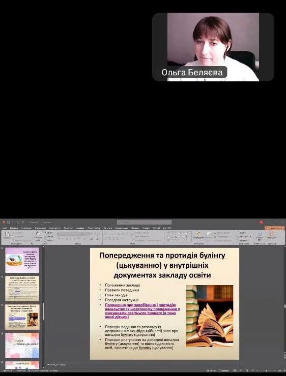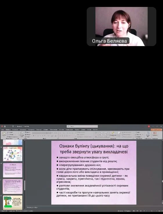 2025 року16 жовтня керівники навчальних груп разом із заступником директора з ОВР І.Цибиною відвідали практичний семінар «Психологічна підтримка як інструмент захисту від булінгу, насильства та небезпечної поведінки», організований НМЦ ВФПО. Під час семінару говорили про: Булінг: як допомогти дитині і куди звертатися по підтримку (Ольга Беляєва – Ph.D, підлітковий психотерапевт, КПТ-консультант, практичний психолог ВСП «Барський фаховий коледж транспорту та будівництва Національного транспотного університету»).